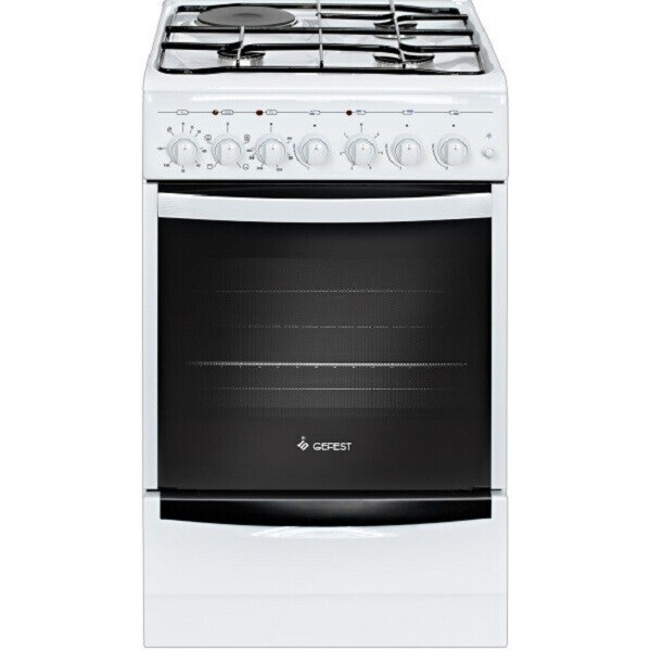 Белая плита шириной 50 см, с электрической духовкой и газоэлектрической варочной поверхностью. Современный дизайн, три газовые конфорки дополнены одной электрической, чугунной. Рабочий стол - эмалированный, со съемной металлической крышкой и стальными решетками, горелки оснащены электроподжигом. Духовой шкаф - с термостатом, классический нагрев дополнен грилем. Для удобства использования, направляющие для противней и вертел исполнены съемными. На панели управления расположен электромеханический таймер, звуковым сигналом предупредит об окончании работы программы. В нижней части GEFEST ПГЭ 5112-02 расположен выдвижной ящик для хранения посуды.