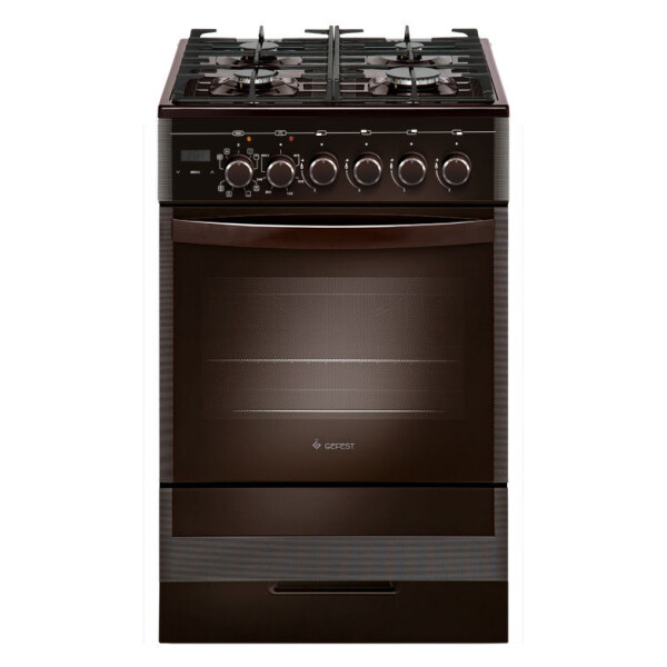 Газовая плита GEFEST 5502-03 0045 имеет стильный темно-коричневый цвет. Для управления плитой используется привычный многим пользователям кухонной техники поворотный механизм. На передней панели есть дисплей, который не только используется для функционирования таймера, но и играет роль часов.