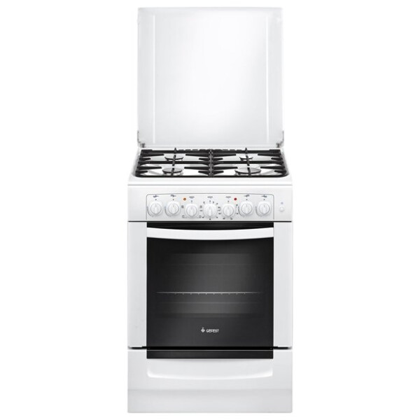 В газовой плите с электрической духовкой Gefest 6102-02 есть свои функциональные особенности: электроподжиг конфорок, электромеханический таймер, терморегулятор, подсветка духовки, регулировочные ножки, выдвижной ящик для посуды. В комплект входит решетка духового шкафа, плоский противень для выпечки и жаровня (глубокий противень), вертел (комплект), чугунная решетка варочной поверхности.