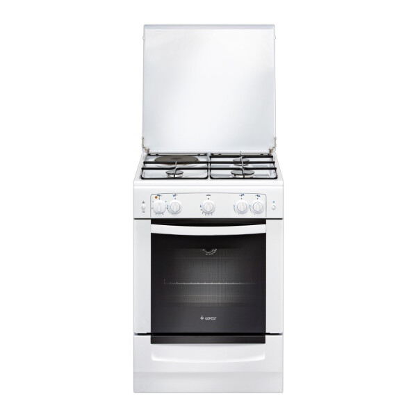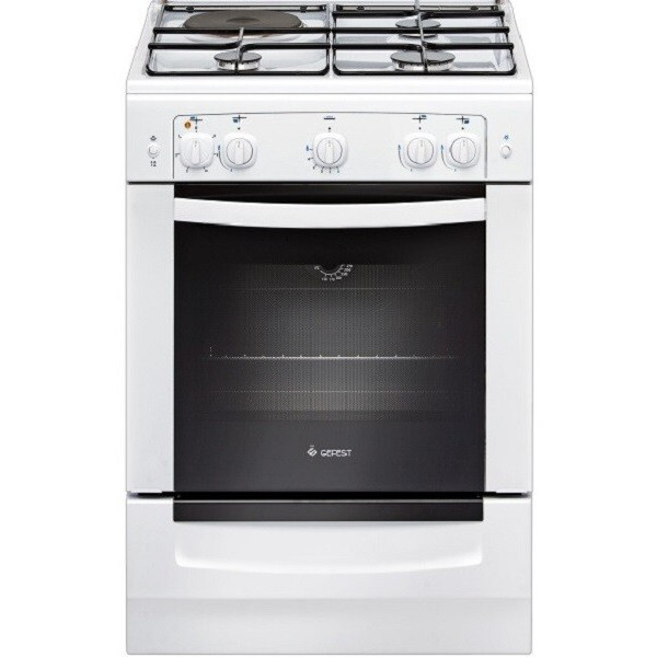 В комбинированной плите с газовой духовкой Gefest 6110-01 есть свои функциональные особенности: электророзжиг горелок стола и духовки (кнопкой на панели управления), одинарная подсветка духовки, термоуказатель духовки, регулировочные ножки, выдвижной ящик для кухонной утвари.
