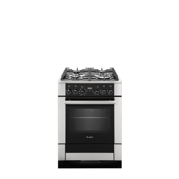 Плита не оснащается крышкой, варочная газовая поверхность - из стекла и надежно защищена от повреждений фигурными чугунными решетками. Четыре газовые конфорки имеют различные размер и мощность, от небольшой и компактной, под турку, до мощной, двухзонной горелки для быстрого нагрева. Все горелки оснащены газ-контролем, электроподжиг встроен в ручки управления. Предусмотрен и режим экономного горения малое пламя, для тушения или медленного прогрева.