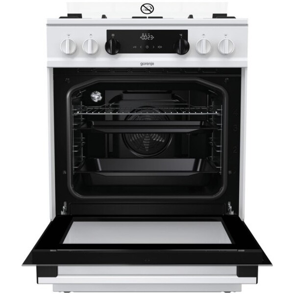 Комбинированная плита Gorenje K634WF сочетает в себе удобство газовой варочной панели и многофункциональность электрической духовки. Четыре конфорки оборудованы автоматическим электроподжигом и газ-контролем. Восемь режимов нагрева и программа очистки паром AquaClean делают духовой шкаф комфортным в эксплуатации и позволяют приготовить даже самые сложные блюда. Особенность данной модели — сенсорный программатор IconLED.