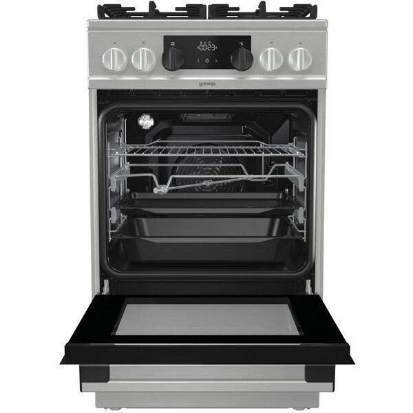 Комбинированная плита Gorenje KC 5355 XV служит для приготовления различных блюд и напитков. Модель сочетает электрическую духовку и газовую варочную панель. Стеклокерамическая поверхность смотрится стильно, а съемные чугунные решетки легко моются.