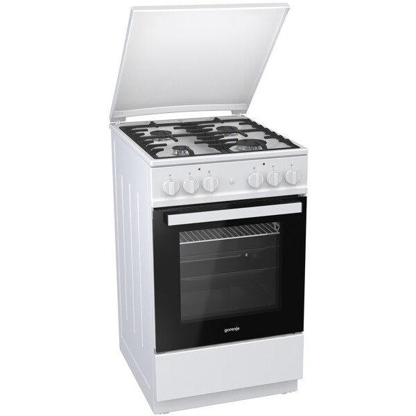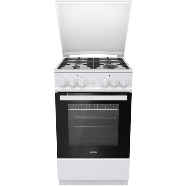 Комбинированная плита Gorenje KN 5142 WF-B с газовыми конфорками и электрической духовкой. Для газовых конфорок предусмотрен механический электроподжиг. Рабочая поверхность покрыта жаростойкой эмалью, которая легко чистится. В духовом отделении предусмотрен электрический гриль.
