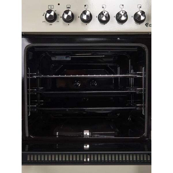 Комбинированная плита Ideal выполнена в нежном молочном оттенке. О безопасности использования можно не беспокоиться, плита снабжена надежным газ-контролем рабочей поверхности и духовки. Качественное эмалированное покрытие не доставит проблем в уходе и прослужит долгое время.