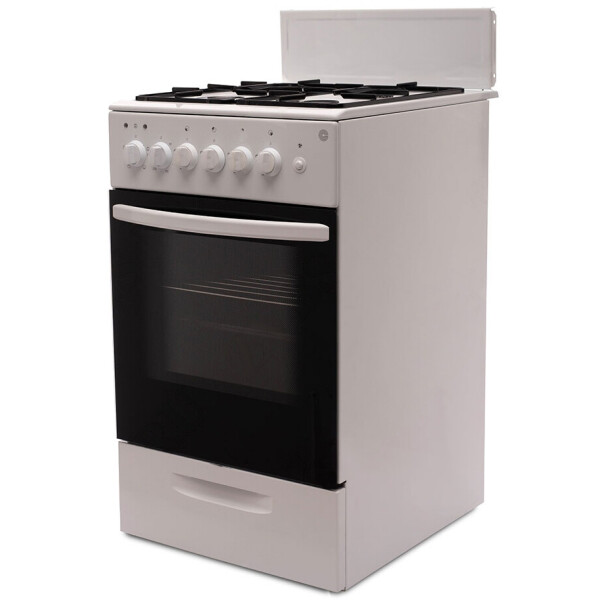 Комбинированная плита с шириной 50 см исполнена в элегантном белом цвете. Четыре газовые конфорки управляются поворотными регуляторами, расположенными на передней панели. С таким простым управлением справится любой человек.