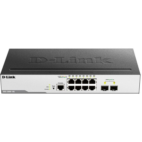 Гигабитные коммутаторы серии DGS-3000 входят в линейку управляемых коммутаторов D-Link уровня 2 и предназначены для использования в сетях Metro Ethernet и сетях кампуса. Коммутатор DGS-3000-10L оснащен 8 портами 10/100/1000Base-T и 2 портами 1000Base-X SFP.