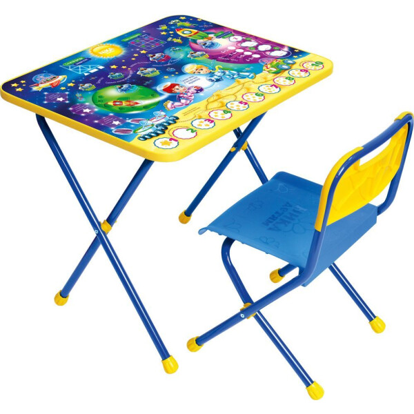 Комплект складной. Подходит для кормления, игр и обучения. Поверхность столешницы ламинированная с нанесением ярких познавательных рисунков. На поверхности стола можно рисовать маркером на водной основе.
