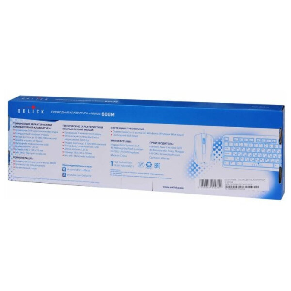 Дополнительной составляющей набора Oklick 600M является клавиатура, оснащенная USB-интерфейсом. Она полноразмерная мембранная, благодаря чему пользоваться ей будет удобно. Конструкция клавиатуры надежно защищена от влаги. В конструкции присутствует полноценный цифровой блок. Все элементы комплекта производились из практичной и износостойкой пластмассы универсального черного цвета.