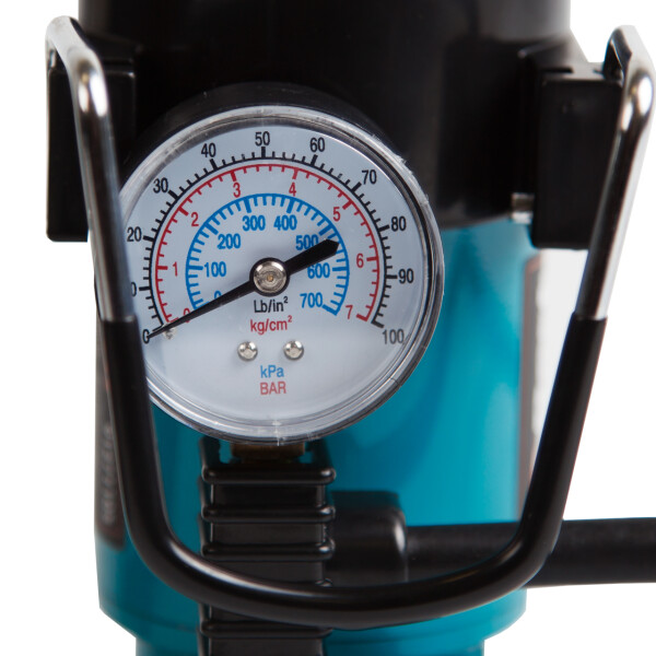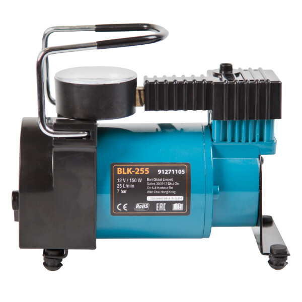 Компактный и удобный насос-компрессор для накачивания легковых шин. Мощности двигателя и максимального давления на выходе в 7 бар вполне достаточно для подкачки шин даже большого диаметра. Для удобства использования и защиты встроенного манометра на верхней части насоса расположена металлическая скоба. Ножки насоса имеют антивибрационные накладки, с помощью этих накладок гасятся вибрации и лишние шумы. Воздушный шланг снабжен прочным металлическим резьбовым клапаном. В комплекте имеются насадки: игла для подкачки мячей и две пластиковые насадки для накачивания матрасов, детских игрушек, бассейнов и тд. Дополнительным бонусом идет сумка, в которой удобно хранить и переносить этот стильный насос-компрессор.