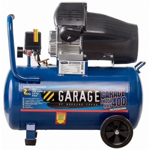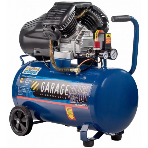 Компрессор Garage PRO 50.MKV400/2.3 - поршневой масляный компрессор с прямой передачей и высокой производительностью, предназначен для получения сжатого воздуха, для работы с широким перечнем пневмоинструмента и пневматическим оборудованием. Компрессор имеет 2-х цилиндровый поршневой блок, что увеличивает его производительность и сферу применения.