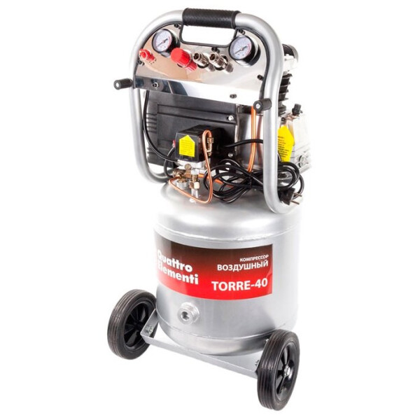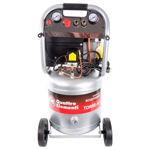 Масляный поршневой компрессор QUATTRO ELEMENTI TORRE-40 770-261 благодаря своему вертикальному исполнению отлично подходит для небольших помещений (гараж, автомастерская). Имеет высокую производительность (170 л/ мин), что позволяет использовать модель в профессиональных областях. В конструкции корпуса предусмотрена широкая прорезиненная рукоять, которая облегчает пользователю перемещение устройства с места на место. Мощность компрессора - 1850 Вт.