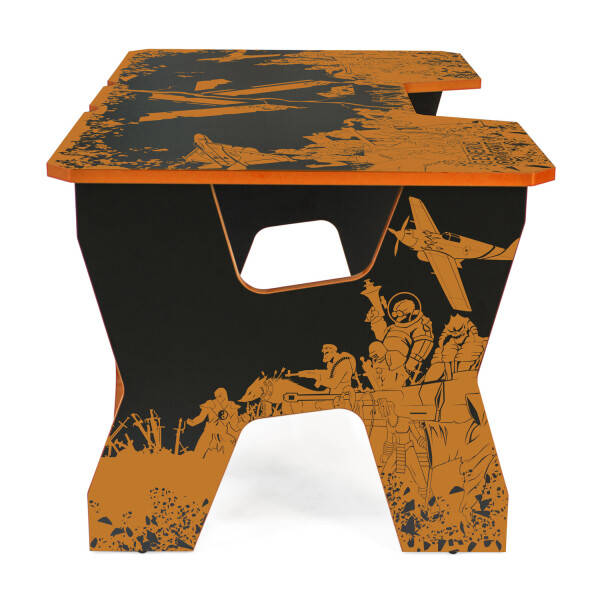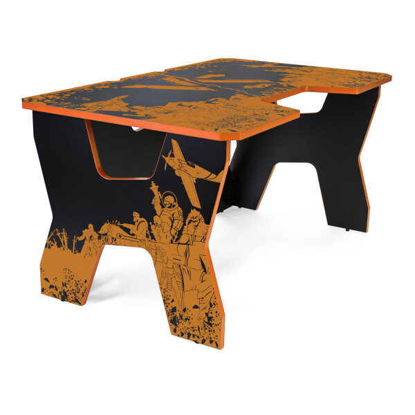 Generic Comfort Gamer2/VS/NO - геймерский стол, отличающийся своим смелым и необычным дизайном. Черная поверхность стола обрамлена оранжевыми кромками и украшена оригинальным рисунком оранжевого цвета, нанесенным по технологии ультрафиолетовой печати. Данный способ нанесения позволяет получить яркие, насыщенные и долговечные изображения с высокой стойкостью к истиранию. Отличительной особенностью данного способа является нанесение изображения слоями, вследствие чего оно выступает на 0,2 мм над поверхностью. Поэтому с данным столом рекомендуется использовать коврик для мышки.