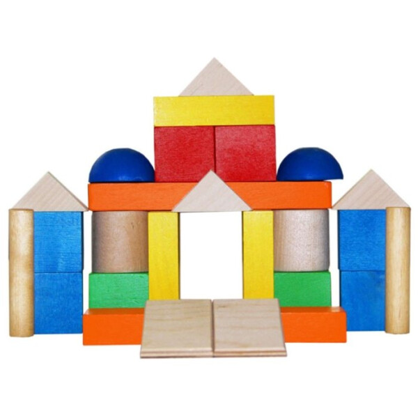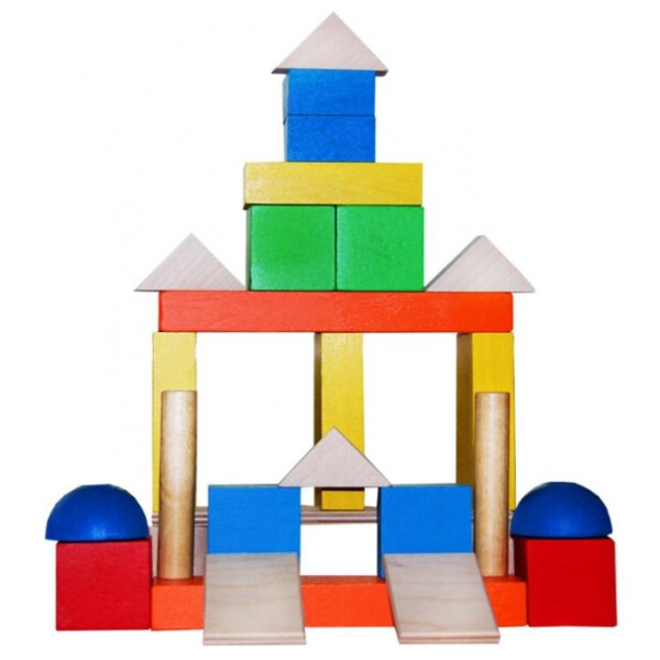 Набор познакомит ребят с разными формами – кубики, кирпичики, призмы, пластины, цилиндры, различными цветами.