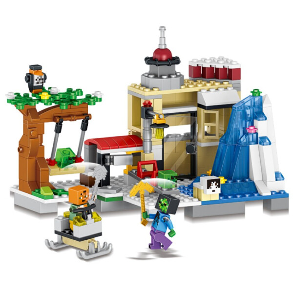 Конструктор LELE My world Снежная гора – уникальное сочетание традиций и современности. Представленное моделью игровой площадки, собранной из 279 элементов, оно дает возможность игроку заниматься обычными житейскими делами майнкрафтовских героев и при этом открывать для них новый фантастический мир.