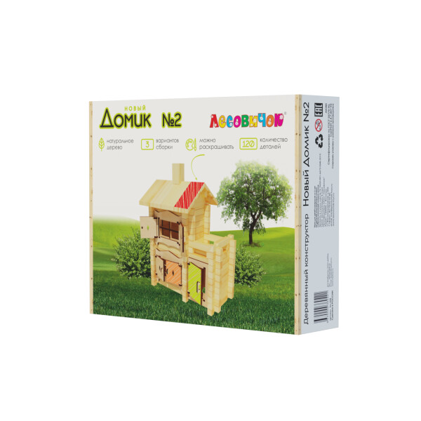 "Новый домик" — серия высококачественного деревянного конструктора отечественного производителя "Лесовичок". Самая яркая отличительная черта (от серии "Разборный домик") — наличие в комплекте большого количества дополнительных элементов и аксессуаров, позволяющих в полной мере реализовать потенциал юного архитектора и дизайнера.