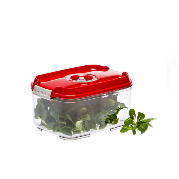 Контейнер снабжён клапаном, совместимым с разными моделями вакууматоров, а также индикатором даты и месяца, помогающим контролировать срок хранения продуктов.