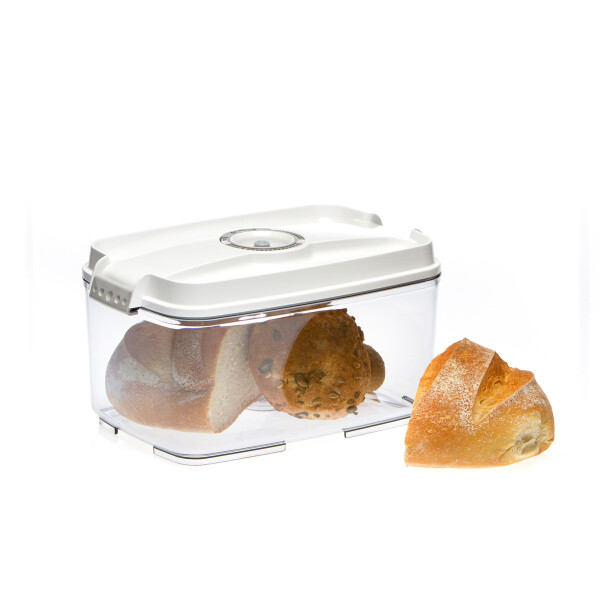 Контейнер снабжён клапаном, совместимым с разными моделями вакууматоров, а также индикатором даты и месяца, помогающим контролировать срок хранения продуктов.
