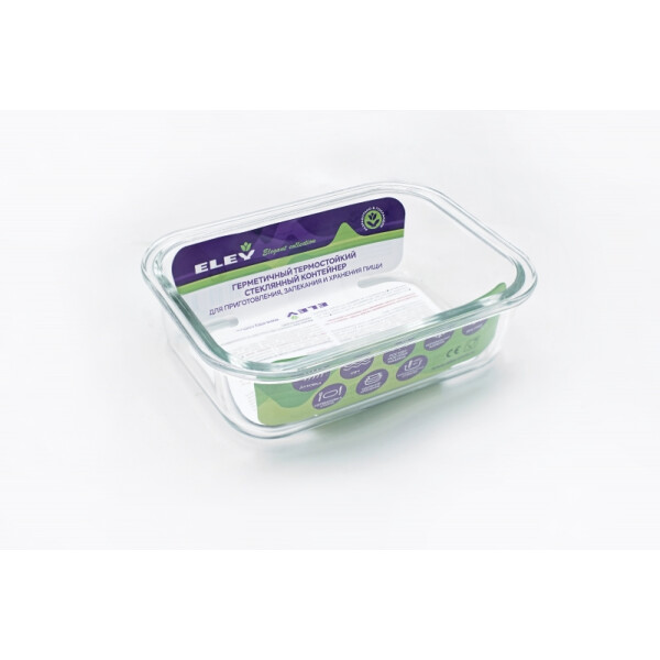 Контейнер прямоугольный Eley 650 мл пищевой из жаропрочного боросиликатного стекла. 1. Подходит для использования в микроволновой печи и духовке (без крышки); 2. Подходит для использования в холодильнике и морозильной камере; 3. Подходит для использования в посудомоечной машине; 4. Можно использовать как форму для запекания (до +400 С). 5. Крышка Air Lock изготовлена из полипропилена и оснащена силиконовым уплотнителем, для обеспечения полной герметичности внутри контейнера.6. В крышку встроен вентиляционный клапан для удобства использования в холодильных и морозильных камерах.