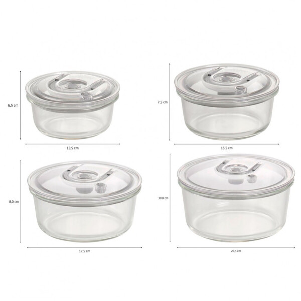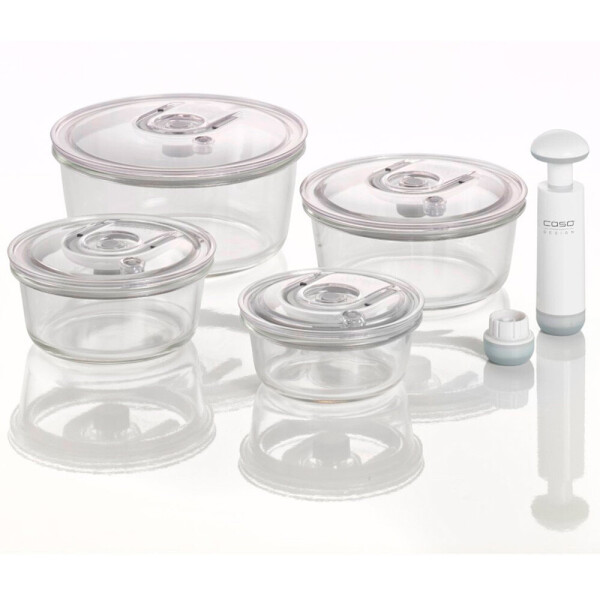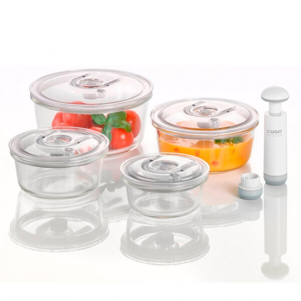 В специальных вакуумных контейнерах продукты дольше сохраняют свой вкус, запах и цвет. В комплект контейнеров для вакуумной упаковки входит четыре вакуумных контейнера объемом 1700, 370, 620, 940 мл, а также ручной насос.