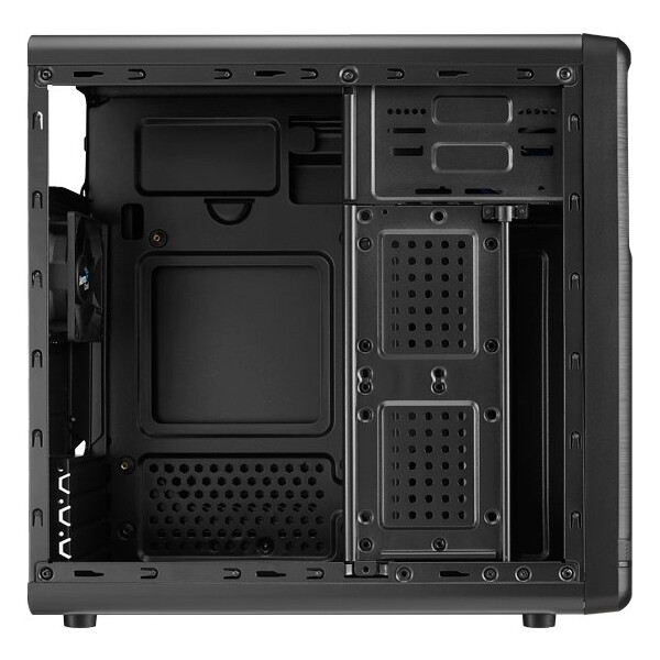 Модель Micro ATX AeroCool Qs-182 Black предусматривает возможность монтажа двух дополнительных вентиляторов 120х120 мм. В заводской сборке установлен только один кулер 80х80 мм. Слот для видеокарты позволяет установить эту комплектующую с длинной не более 320 мм, а система охлаждения процессора не должна быть выше 145 мм. Данный корпус позволяет использовать съемный жесткий диск 3.5" и содержит два слота внутри под такие же накопители. Четыре слота расширения предоставляют широкие возможности по усовершенствованию ПК. К корпусу прилагаются крепежные винты и документация.