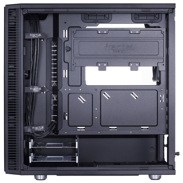 За счет того, что Define C TG компактнее обычного ATX и microATX-корпусов и его внутреннее пространство оптимизировано, корпус становится идеальной основой для сборки любой конфигурации. Компоновка внутреннего пространства способствует свободному прохождению воздуха вокруг основных компонентов, обеспечивая хорошее охлаждение и тишину работы системы. Широкая поддержка охлаждения (как воздушного, так и жидкостного) обеспечивает создание мощных систем. Обладая чертами серии Define, корпус Define C TG получил характерный дизайн передней панели, плотный звукопоглощающий материал и верхнюю панель с заглушками ModuVent. Те, кому хочется снять ModuVent и установить дополнительные вентиляторы или радиатор, вместо заглушек могут зафиксировать пылевой фильтр с магнитными креплениями, а встроенный кожух для блока питания обеспечивает непревзойденный уровень укладки кабелей.