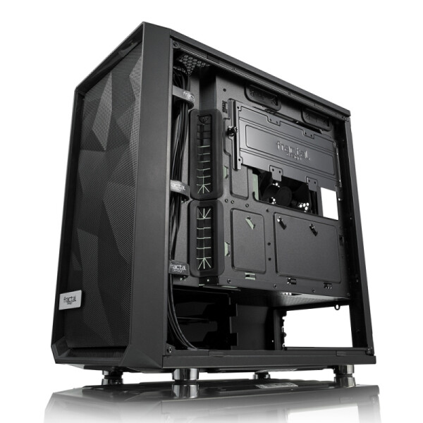 Meshify C Mini TG выделяется агрессивным дизайном в линейке корпусов Fractal Design, обеспечивая непревзойденное охлаждение системы. Угловатая асимметрия передней панели Meshify C Mini TG напоминает грани черного алмаза и, помимо эстетических функций, обеспечивает интенсивную вентиляцию. Затемненное закаленное стекло завершает идею дизайна, вдохновленного самолетами стелс.