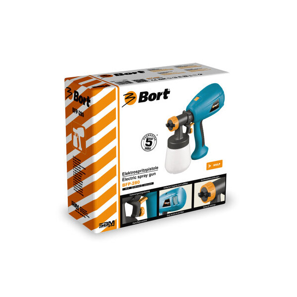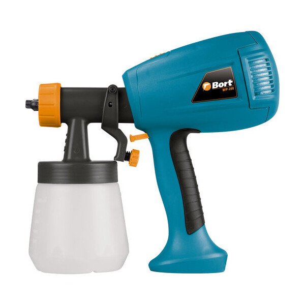 Электрический распылитель BORT BFP-280 93728595 комплектуется чашкой-вискозиметром, что позволяет вычислить вязкость краски. Универсальная модель равномерно наносит краску или другую жидкость на неровную поверхность. Емкость для жидкости легко снимается и моется. Простая конструкция приспособления не вызывает затруднений при эксплуатации. Краскопульт - эффективный инструмент для ремонтно-отделочной работы.