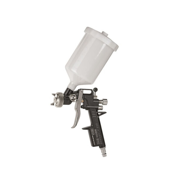 Ориентированный на работу в домашних условиях,прекрасно подходит для ведения окрасочных работ по металлу, керамике, дереву и другим материалам. Краскораспылитель наделён высокой прочностью, а верхнего бачка объёмом 600 мл хватит на довольно продолжительный период работы. Диаметр сопла составляет 2 мм. У краскораспылителя необходимую ширину веерообразной струи можно отрегулировать с помощью специальной муфты вблизи сопла; Инструмент оснащен рукояткой удобной формы, которая обеспечивает комфортную работу;