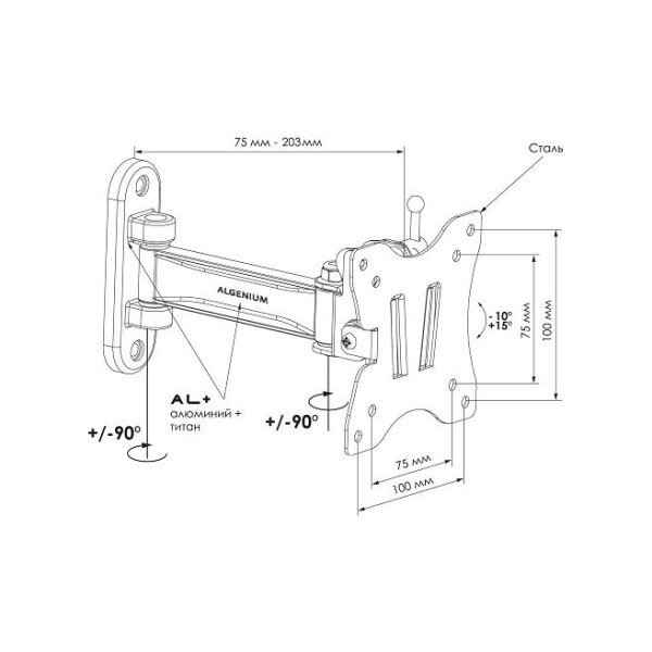 Кронштейн ALGENIUM LS 51-20 M предназначен для крепления на стену LCD, LED, ЖК телевизора с диагональю экрана 15" -27" (38 см – 68 см). Кронштейны данной серии выполнены по литьевой технологии.