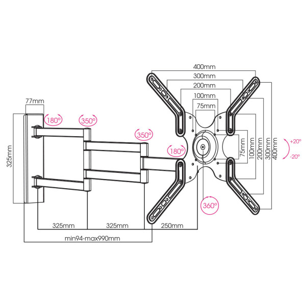 Универсальный - телевизор на кронштейне можно наклонить, повернуть и сдвинуть к стене