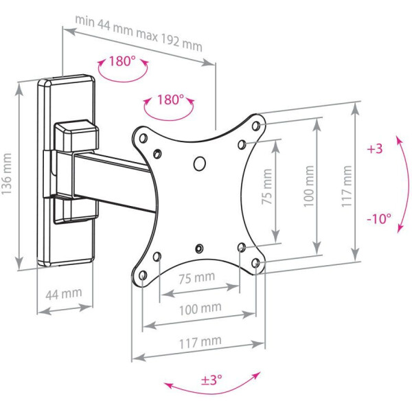 | Расстояние от плоскости (стены, потолка) минимальное | 44