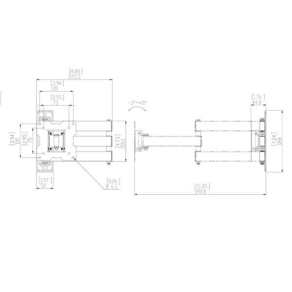 Кронштейн имеет четыре степени свободы, он наклоняется, поворачивается у основания, у колена и у адаптера.