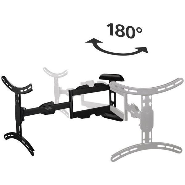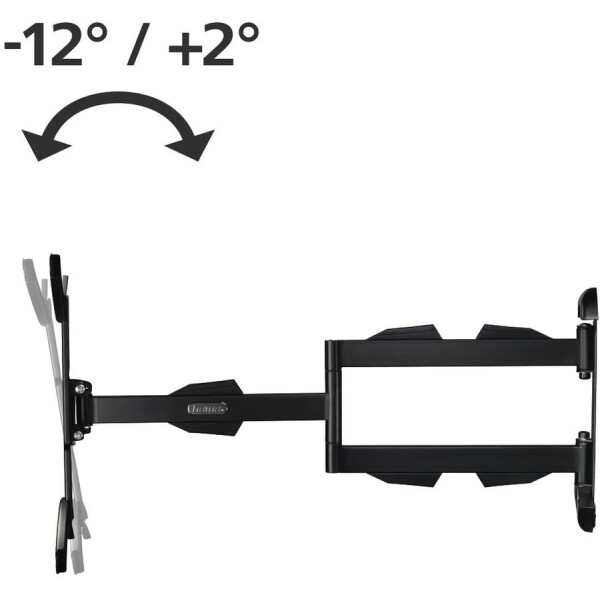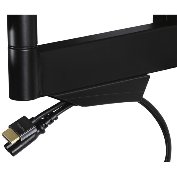 HAMA H-108712 подходит для техники размером 32-65 дюймов. Благодаря надежной конструкции модель выдерживает до 25 кг. Для максимального удобства при просмотре телевизора предусмотрена возможность наклона и поворота кронштейна.
