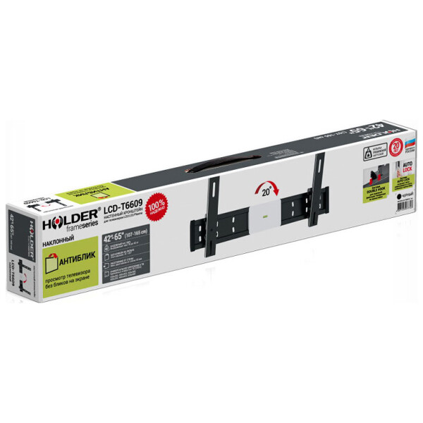 Крепление для ТВ и мониторов Holder LCD-T6609-B предназначено для подвешивания на стене телевизоров с диагональю экрана от 42" до 65". Конструкция крепления, выполненного из прочной стали толщиной в 2 мм, характеризуется высокой надежностью. Максимальная нагрузка на крепление не должна превышать 45 килограмм.