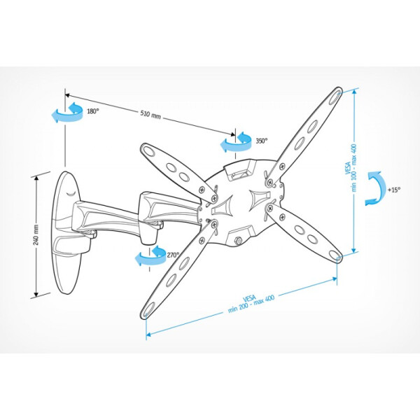 Крепление для ТВ и мониторов укомплектовано всеми главными элементами: набор подходящих крепежей и инструкция с подробным описание эксплуатационного процесса. Для правильного монтажа крепления важно учитывать максимальное/минимальное допустимое расстояние от стены – 510 и 93 мм соответственно. Модель LCDS-5029 абсолютно безопасна и проста в монтаже.