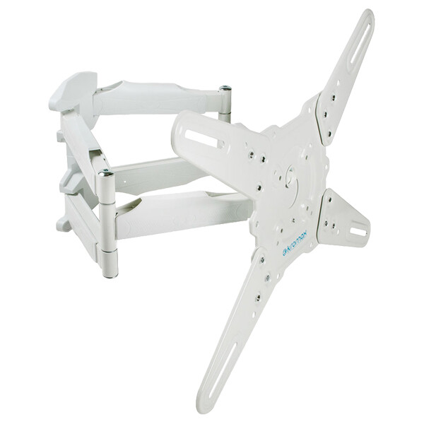 Kromax Atlantis-45 – поворотно-наклонный кронштейн для телевизора. Его двойные рычаги позволяют плавно регулировать расстояние до стены, выбирая оптимальное положение экрана и обеспечивая превосходный обзор изображения. Если после монтажа вы обнаружите неровность, её можно будет исправить – крепления поворачиваются на 3 градуса относительно горизонта. Съёмные пластины облегчают установку телевизора, а встроенные кабель-каналы предоставляют место для скрытого прокладывания проводов.