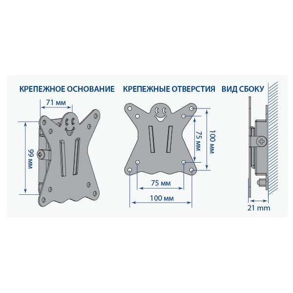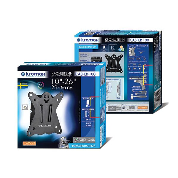 .Оригинальный фиксированный ультратонкий кронштейн CASPER-100 идеально подходит для всех LED/LCD телевизоров с диагональю экрана от 10 до 26 дюймов (25-66 см) и весом до 25 кг. Надежная стальная конструкция позволяет разместить телевизор максимально близко к стене на расстоянии всего 21 мм. Крепежные отверстия соответствуют стандартам VESA 75×75 мм и 100×100 мм.