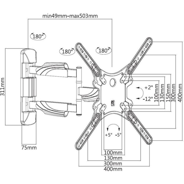 | Расстояние от плоскости (стены, потолка) максимальное | 503