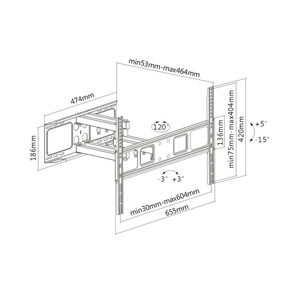 | Расстояние от плоскости (стены, потолка) максимальное | 464