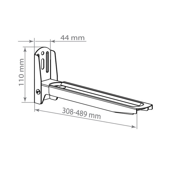 Регулируемые по глубине опоры 308-489 мм. Свободная ширина установки кронштейнов. Безопасная фиксация СВЧ-печи на кронштейне. Надежная стальная конструкция.