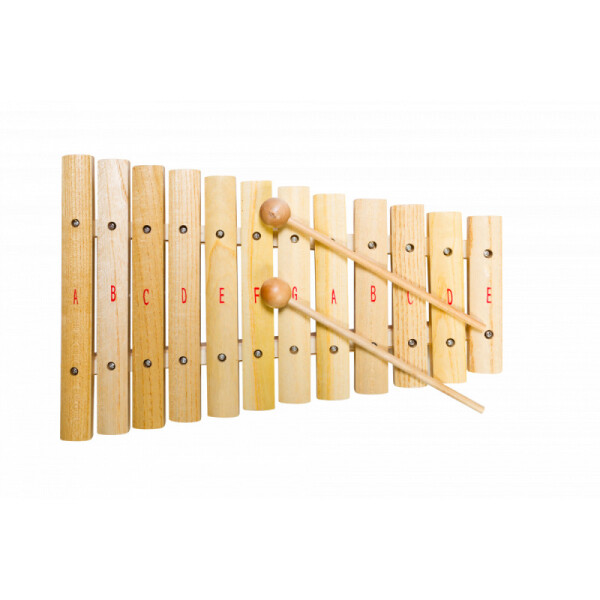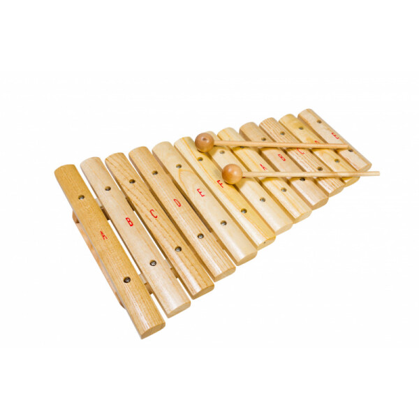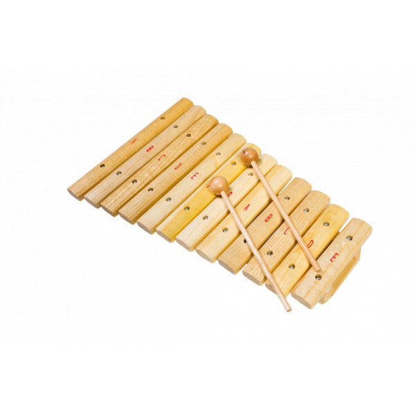 У данной модели 12 деревянных брусочков, соответствующих нотам, и 2 палочки.