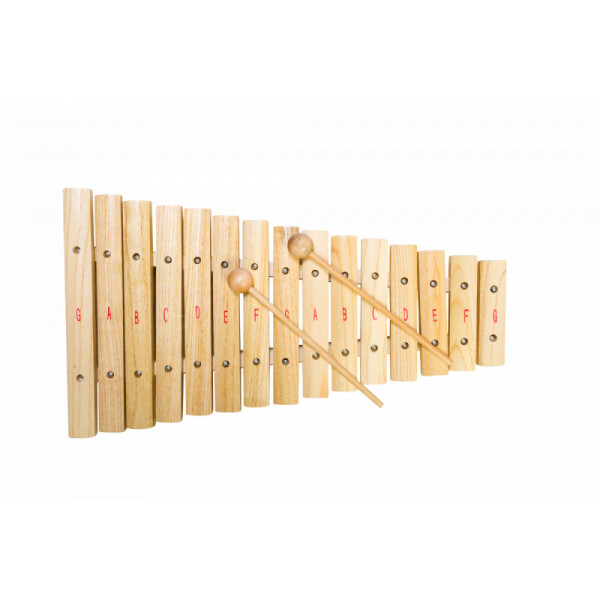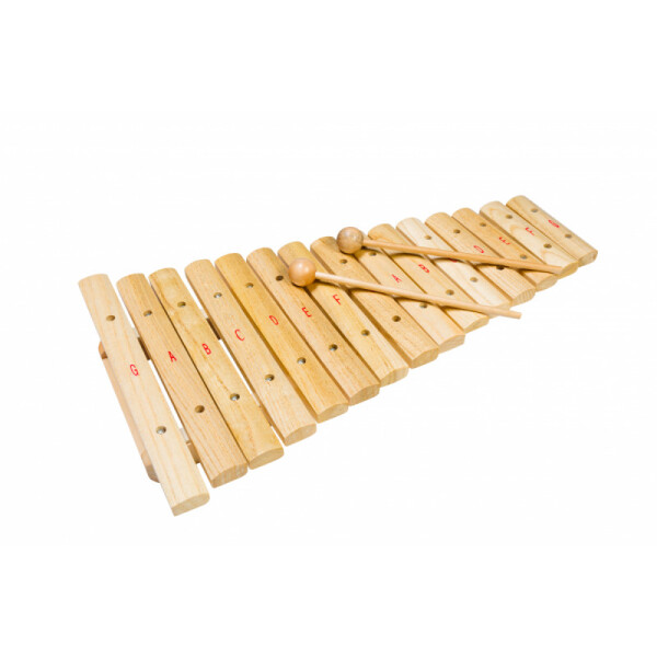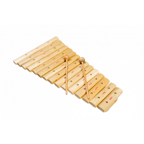 У данной модели 15 деревянных брусочков, соответствующих нотам, и 2 палочки.