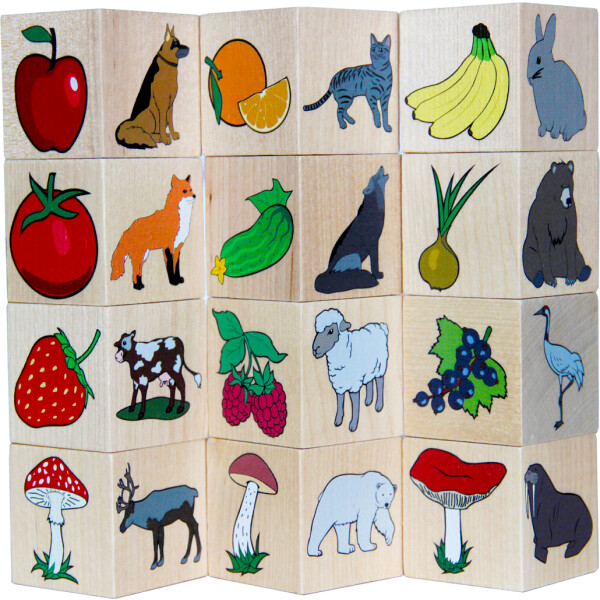Игры с этими деревянными кубиками помогут ребенку в формировании целостной картины мира и расширении кругозора, в частности представлений об окружающем мире.