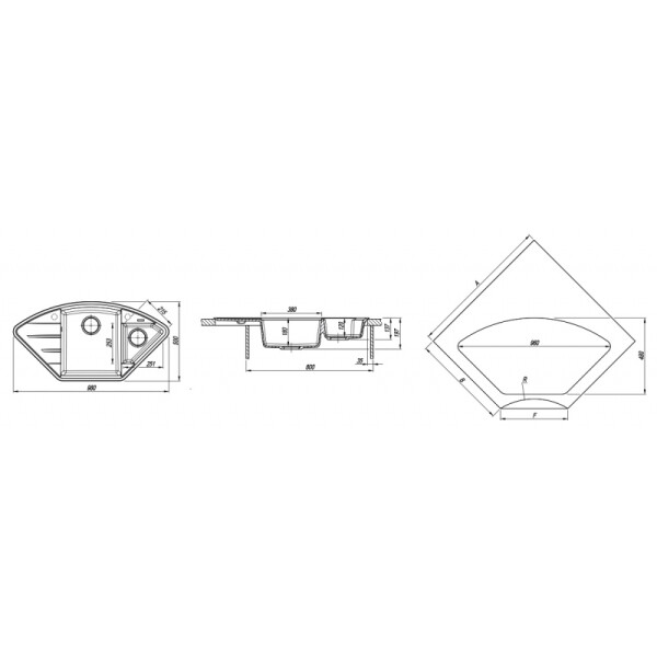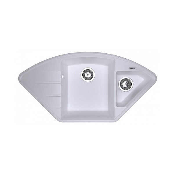 Угловая мойка с двойной чашей и крылом для кухонного блока 90 см. Угол наклона стенок составляет всего лишь 5 градусов, что сохраняет объем по всей внутренней глубине чаши. В комплектацию мойки входит: отводная арматура с выпуском 3 1/2" (D=90) и переливом, набор крепежей, трафарет для вырезания столешницы, технический паспорт, гарантийный талон. Мойка имеет подготовленные отверстия под смеситель и аксессуары. Отверстия надсверленны с обратной стороны и отмеченные желтым сигнальным кругом с лицевой стороны.