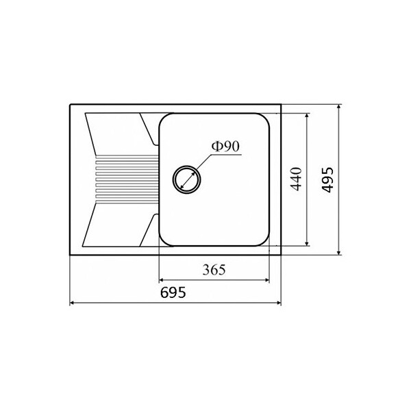 Полноразмерная гранитная мойка интересного дизайна с глубокой чашей и крылом непременно станет настоящим украшением вашей кухни. Имеется 2 намеченных отверстия под смеситель, отверстие перелива. Прочный металлический крепеж, установленный на мойке, обеспечивает надежную её фиксацию в столешнице. Минимальная толщина стенок мойки - 8 мм. Мойка укомплектована сливной арматурой.