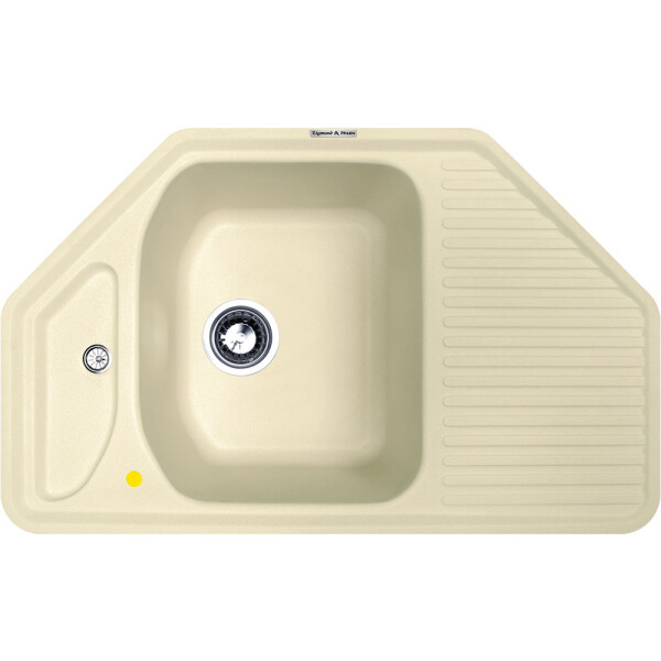 Конструкция имеет две чаши разных размеров: основная, прямоугольной формы, с закругленными углами, расположена посередине, а вторая маленькая неправильной формы находится сбоку от нее. На противоположной стороне размещено удобное треугольное крыло, на котором можно сушить вымытую посуду. Что примечательно, углублённое закругление слева в основной рабочей полости, позволяет разместить в чаше посуду даже с длинными ручками, не наклоняя ее и не уменьшая полезный объём мойки.