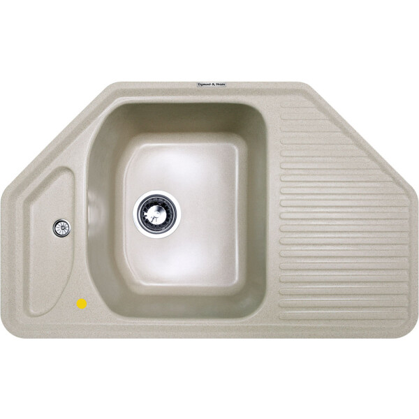Первое, что бросается в глаза – это нестандартная, современная эргономичная форма. Модель ECKIG 800 представляет собой изумительную альтернативу прямолинейной двухсекционной мойке. Выполненная из натурального гранитного камня, эта симметричная угловая мойка, имеет отличные показатели качества и высокой функциональности. Такое устройство предназначено для встраивания в угловую секцию столешницы, что позволяет использовать пространство с максимальной рациональностью. Конструкция имеет две чаши разных размеров: основная, прямоугольной формы, с закругленными углами, расположена посередине, а вторая маленькая неправильной формы находится сбоку от нее. На противоположной стороне размещено удобное треугольное крыло, на котором можно сушить вымытую посуду. Что примечательно, углублённое закругление слева в основной рабочей полости, позволяет разместить в чаше посуду даже с длинными ручками, не наклоняя ее и не уменьшая полезный объём мойки.