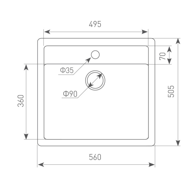 Размеры мойки (ШхГ)56х50.50 см