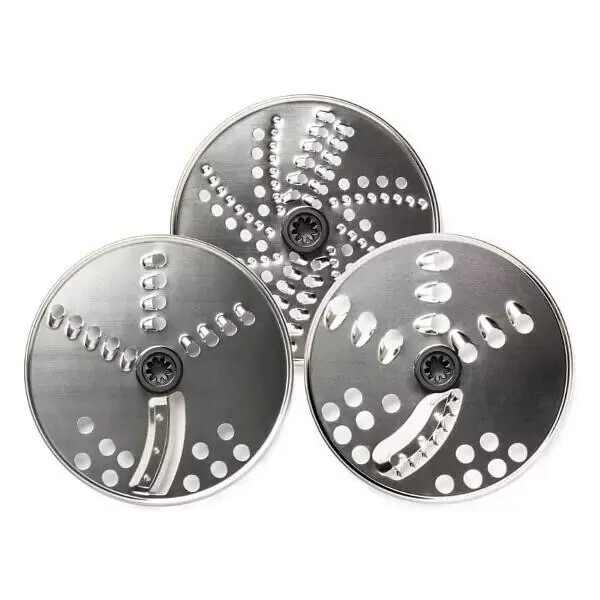 В комплекте насадка-соковыжималка для цитрусовых, 3 режущих диска из нержавеющей стали, лопаточка для быстрого и чистого удаления продуктов.